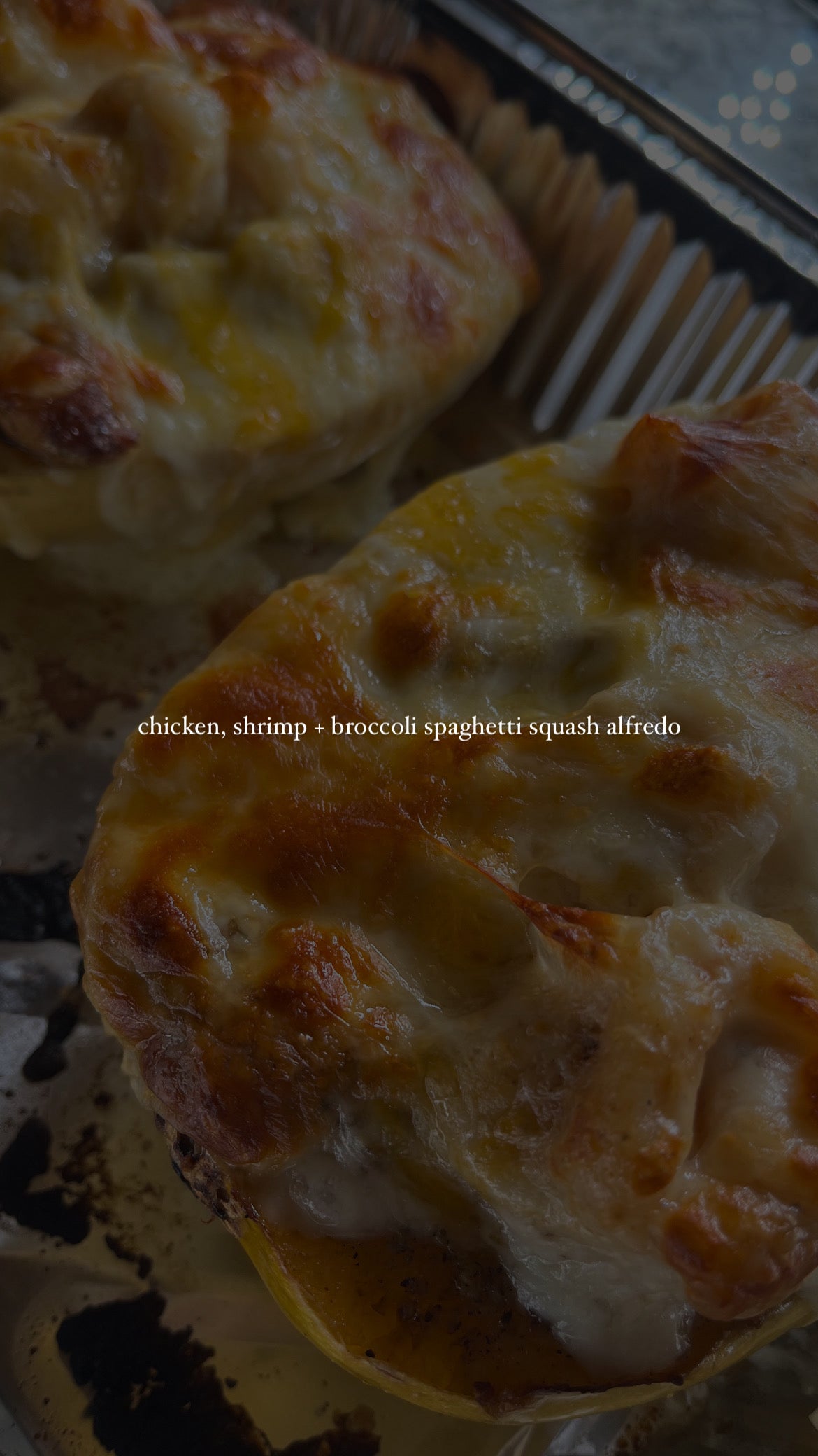 Chicken, Shrimp & Broccoli Spaghetti Squash Alfredo